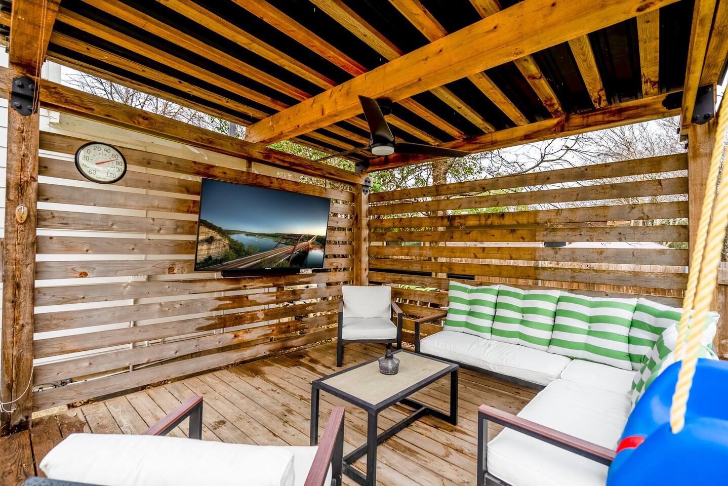 Must be 25 or Older to Book In an effort to be good neighbors, please keep the outdoor volume reasonable after 10pm or move the fun indoors. We have noise monitors that don't record audio to help with this. We also have outdoor video cameras above the front door, driveway, and main patio - we don't review any footage unless there is an issue.....your privacy is important to us. For your safety, we have a Ring Doorbell & 2 exterior security cameras (front porch backyard). There are no indoor cameras and we don't review any footage unless there is an incident so you will have full privacy! We also have a noise sensor that alert us if it is too loud outside at after 10pm. City of Austin Short Term Rental Permit # OL2023005585